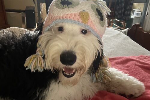 Grover with his winter hat, ready to play in the snow in Carthage NC.